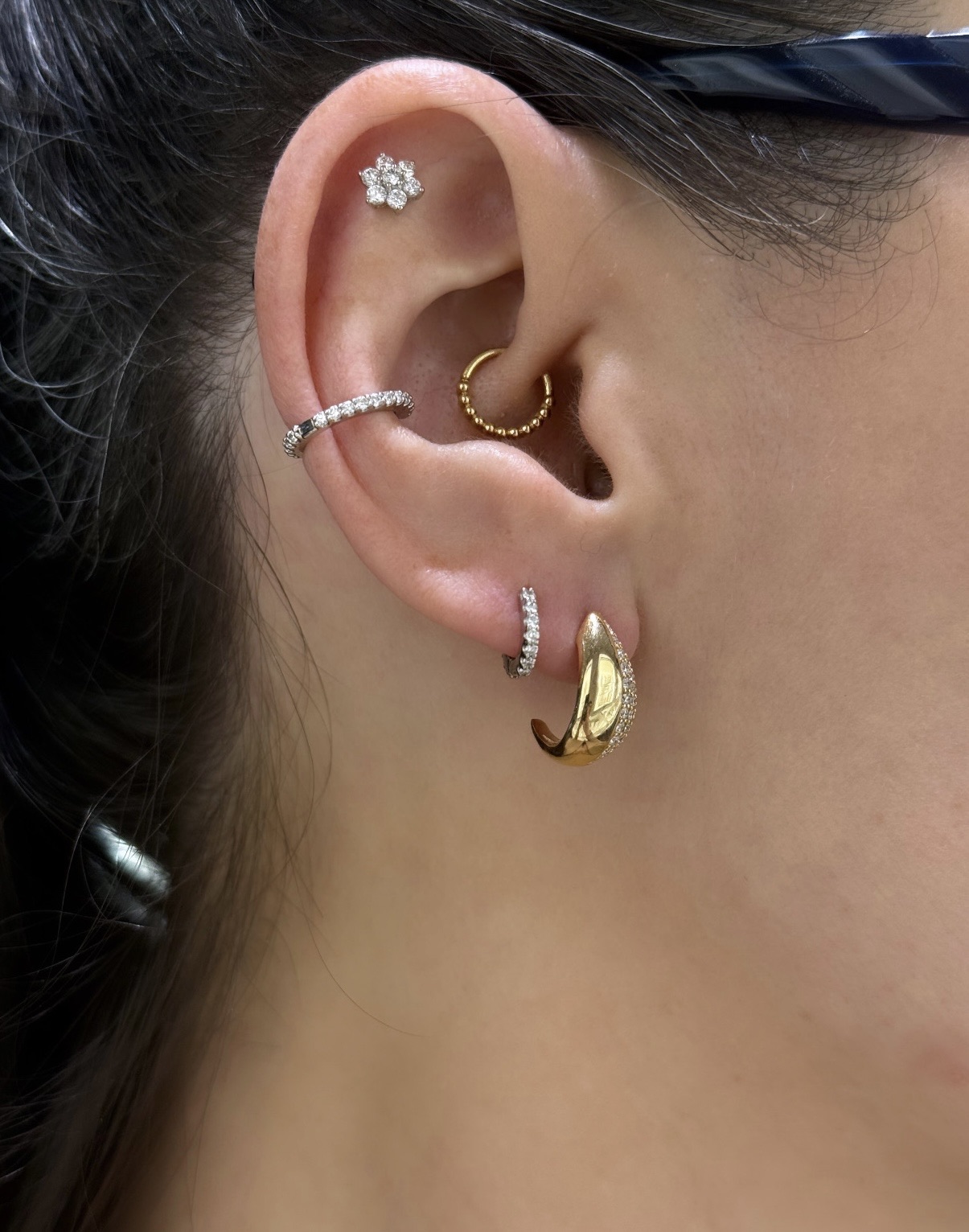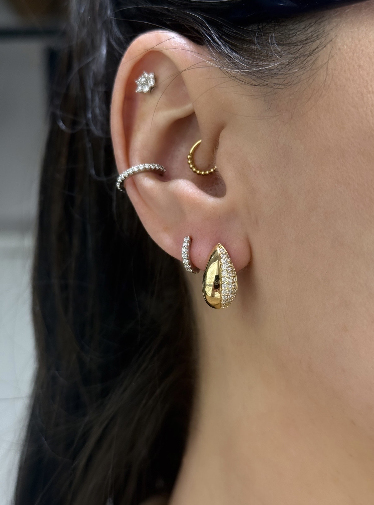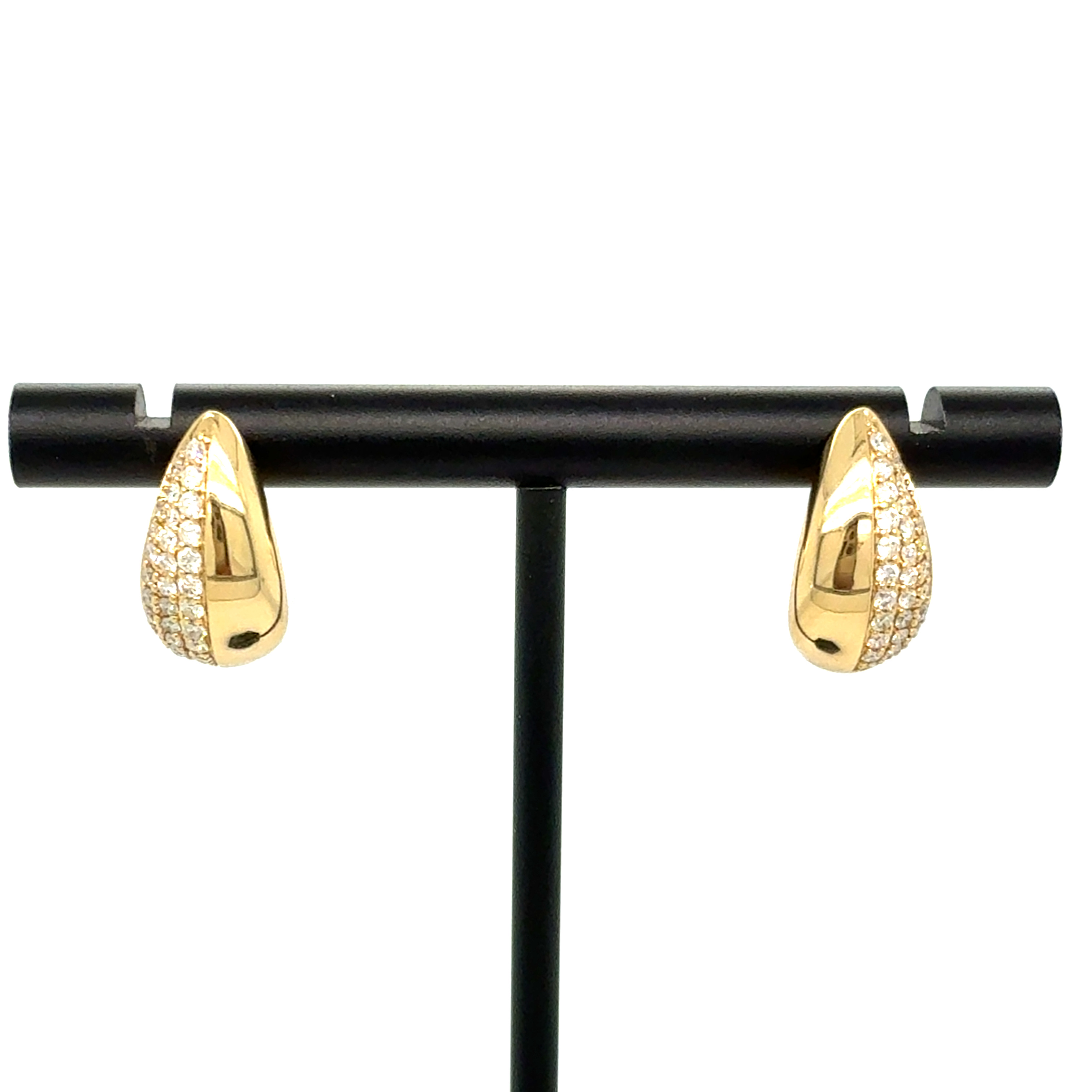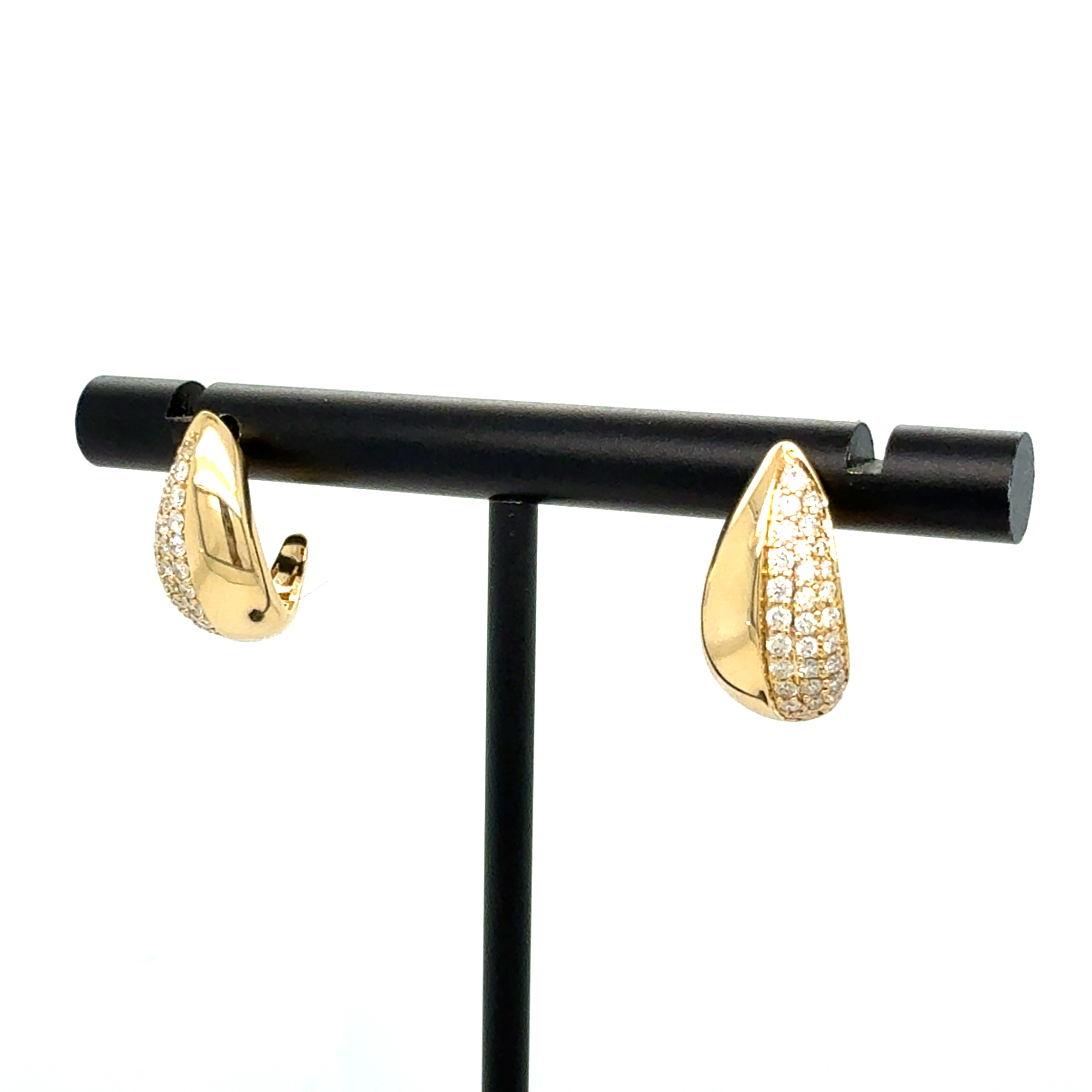 18KY GOLD "SCINTILLATE" HALF POLISHED & HALF PAVE DIAMOND J-HOOP EARRINGS