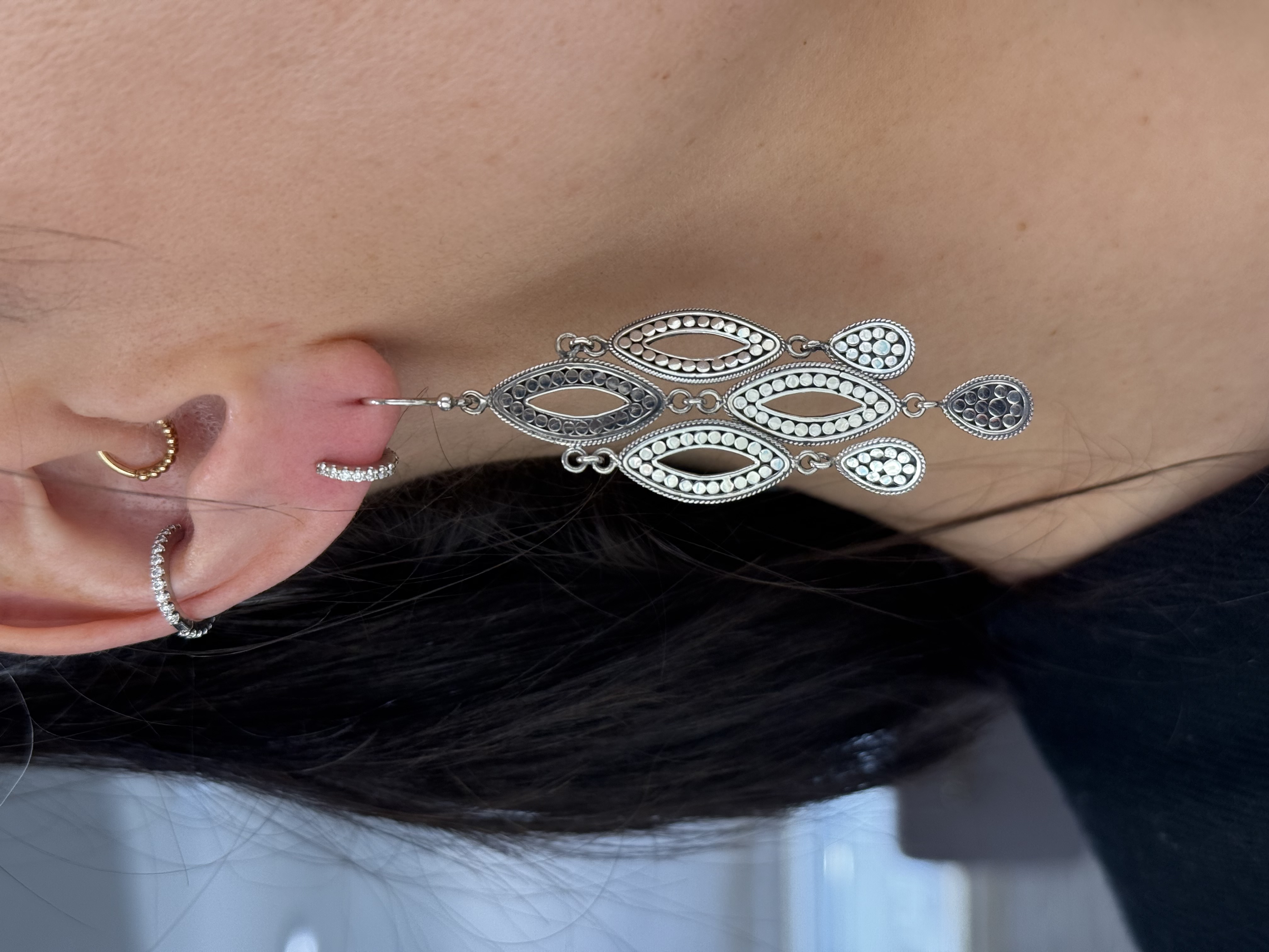 Description STERLING SILVER CHANDELIER DROP EARRINGS WITH DOT DESIGN SAMUEL B. COLLECTION | HANDCRAFTED IN BALISTERLING SILVER- 925, HIGH POLISHEARRING CLOSURE: FRENCH WIRE 1 YEAR WARRANTY CARD INCLUDED