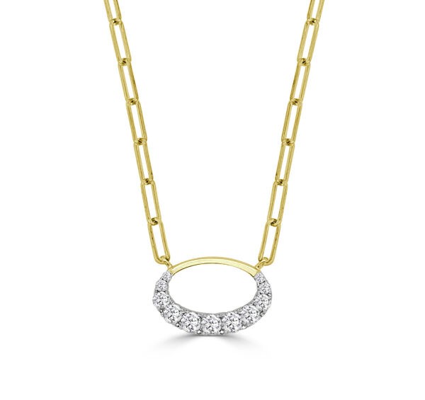 14ky&w gold small oval "clip" diamond pendant with attached paper clip chain 2/5cttw G-H, VS2-SI1