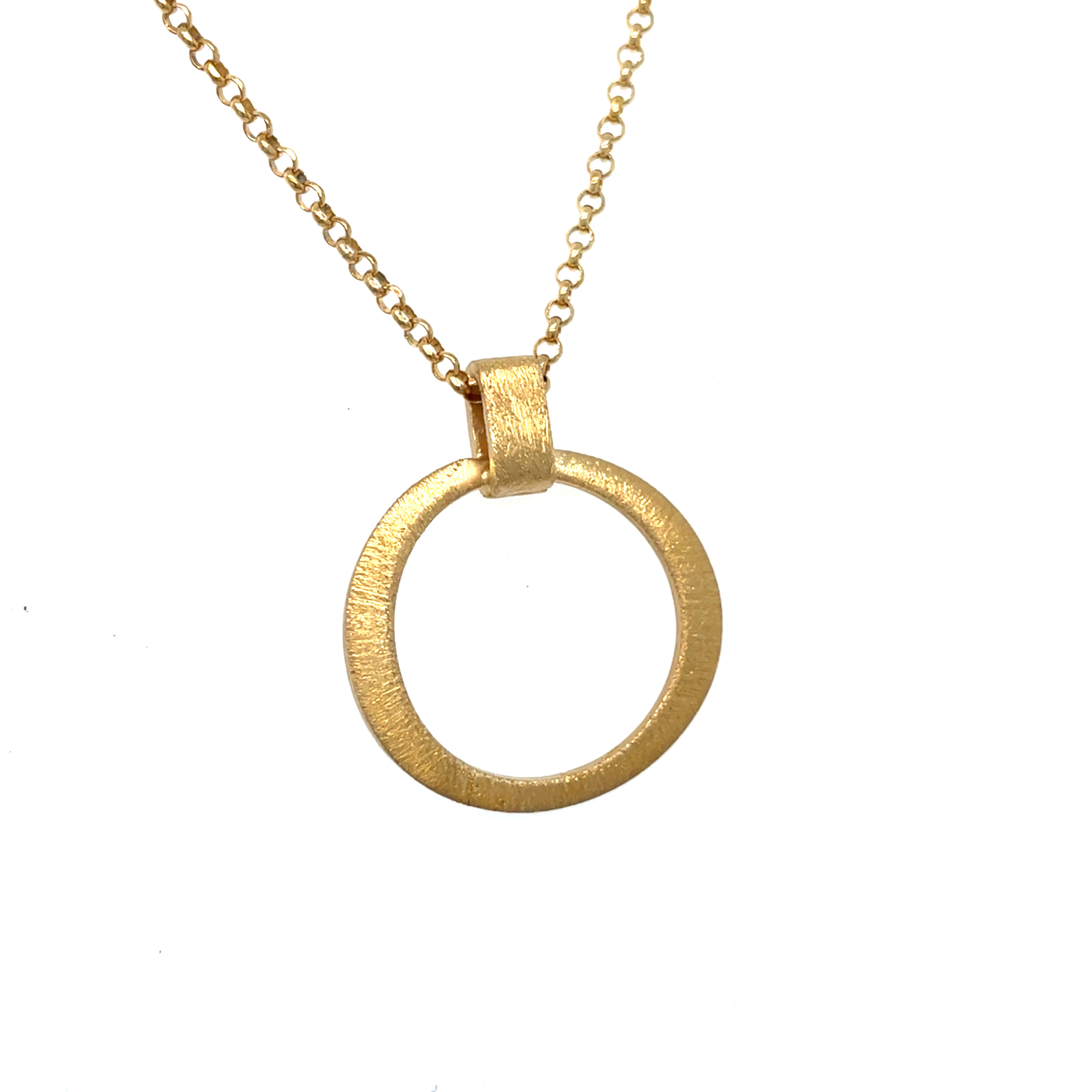 17.5" STERLING SILVER WITH YELLOW GOLD VERMEIL "AVAYGRAY" SMALL CIRCLE PENDANT WITH BRUSHED FINISH