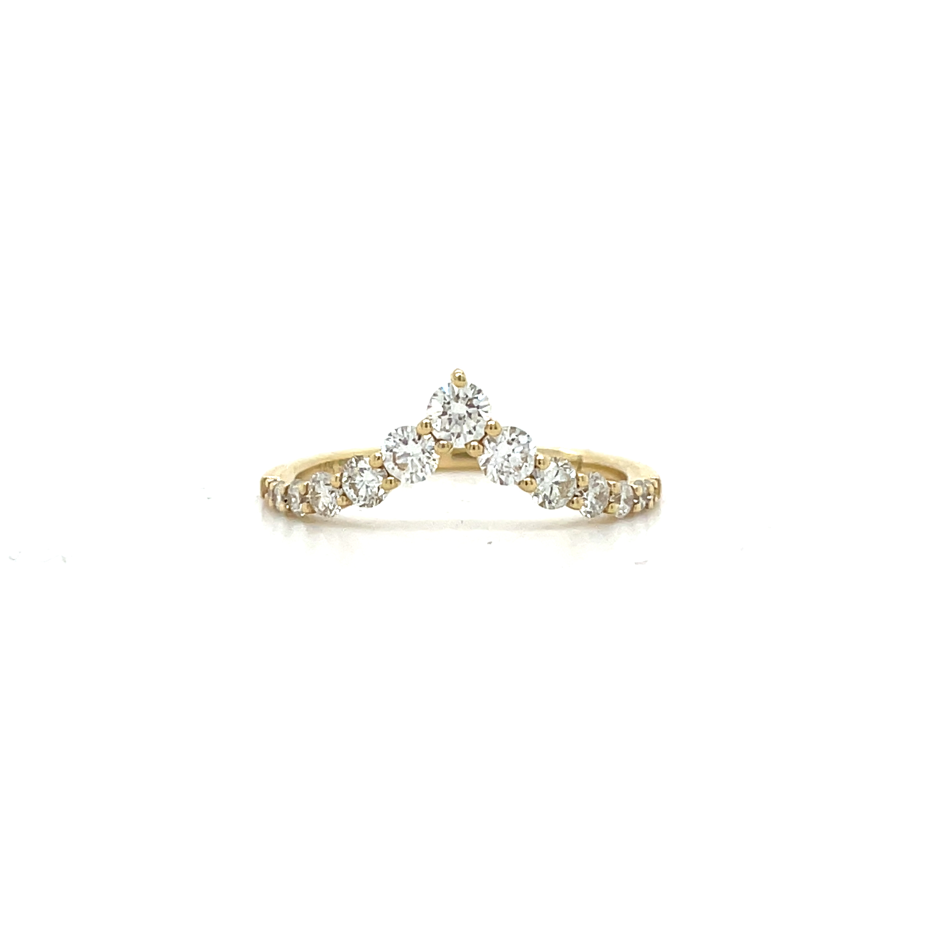 This exquisite 14K yellow gold V-shape wedding ring is a timeless symbol of love and commitment. Crafted with meticulous attention to detail, the ring features a sleek V-shaped design that elegantly contours to the finger, offering both comfort and style.
