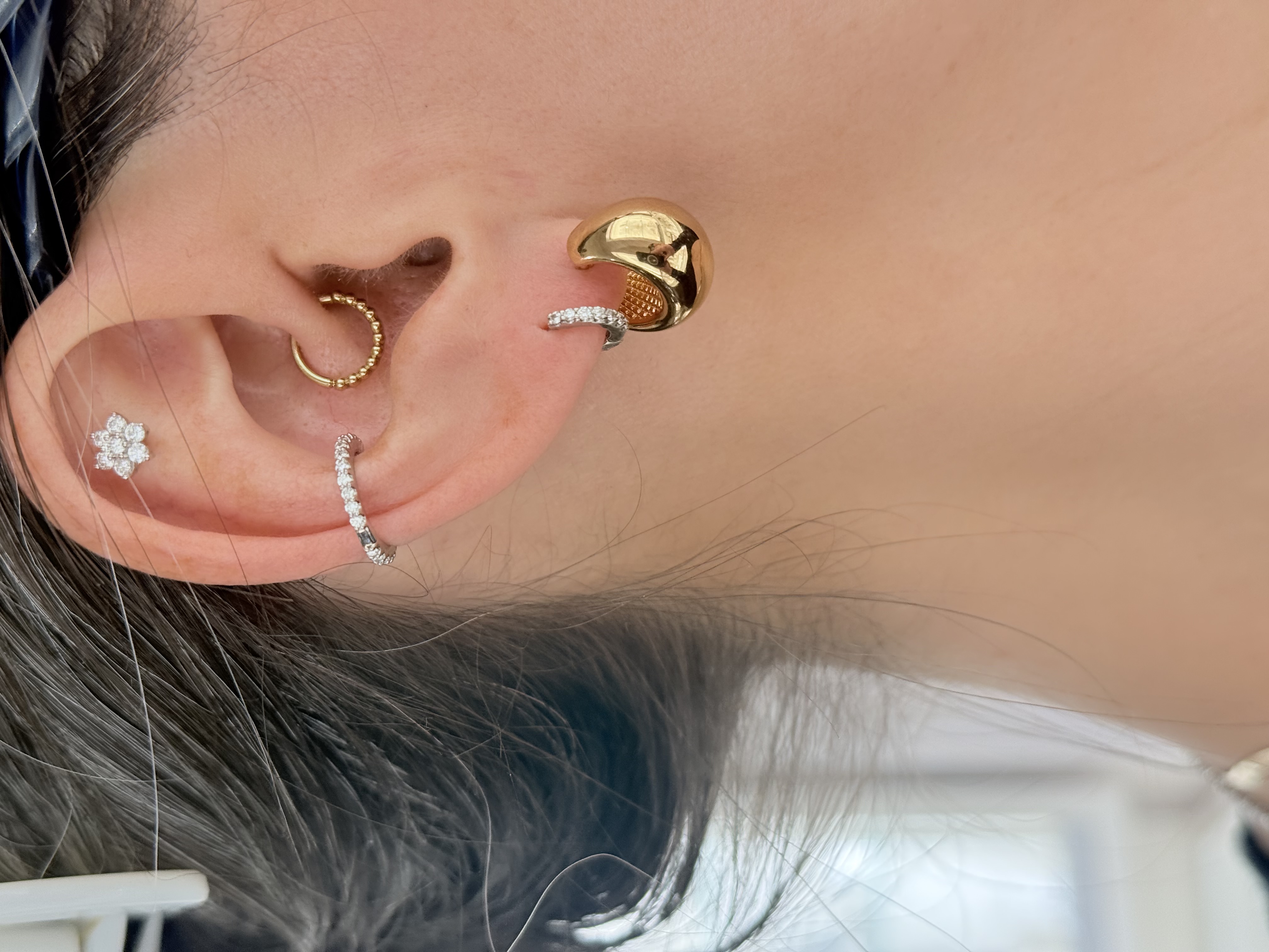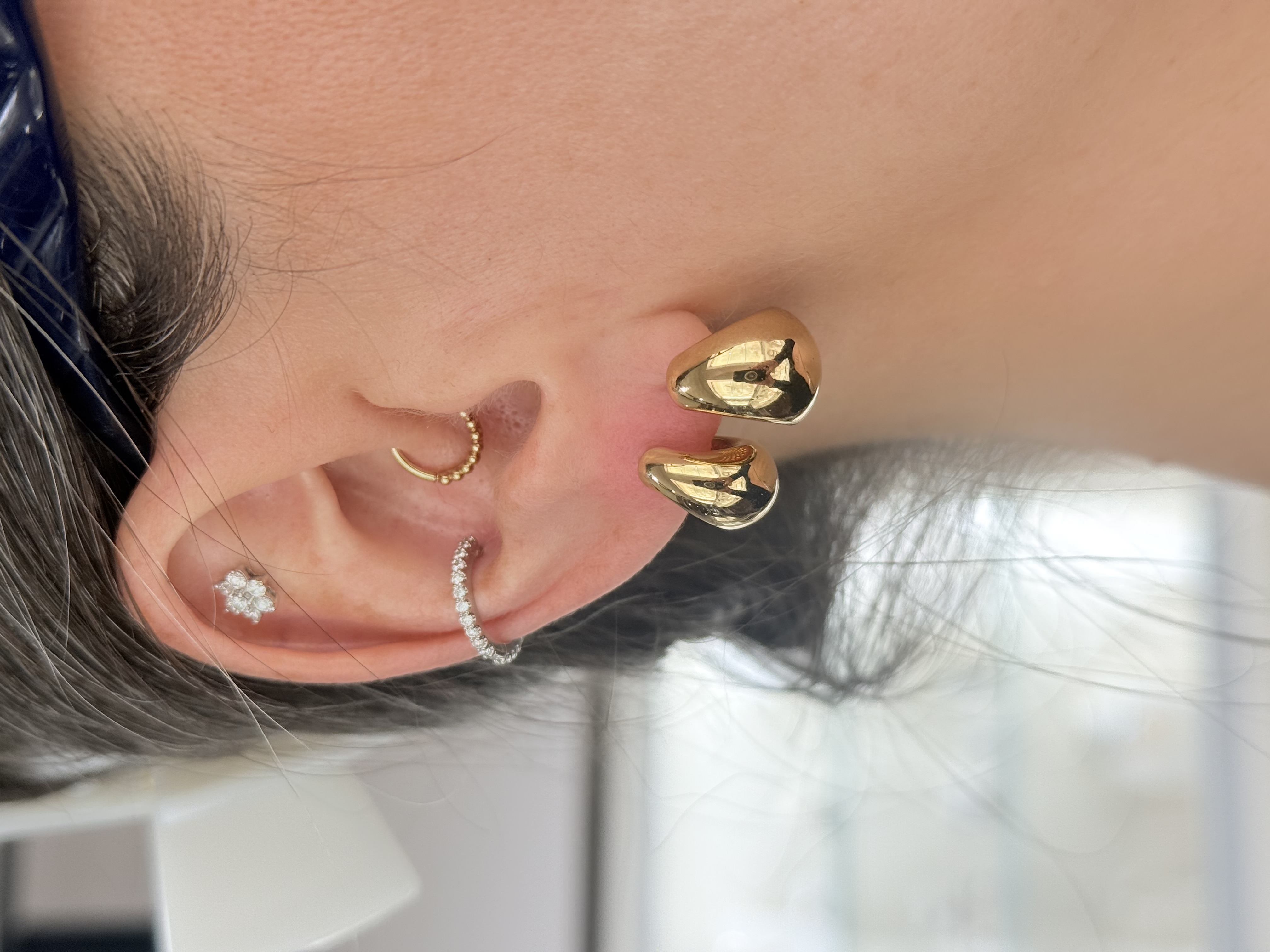 14K GOLD SMALL "PUFF" HOOP EARRINGS