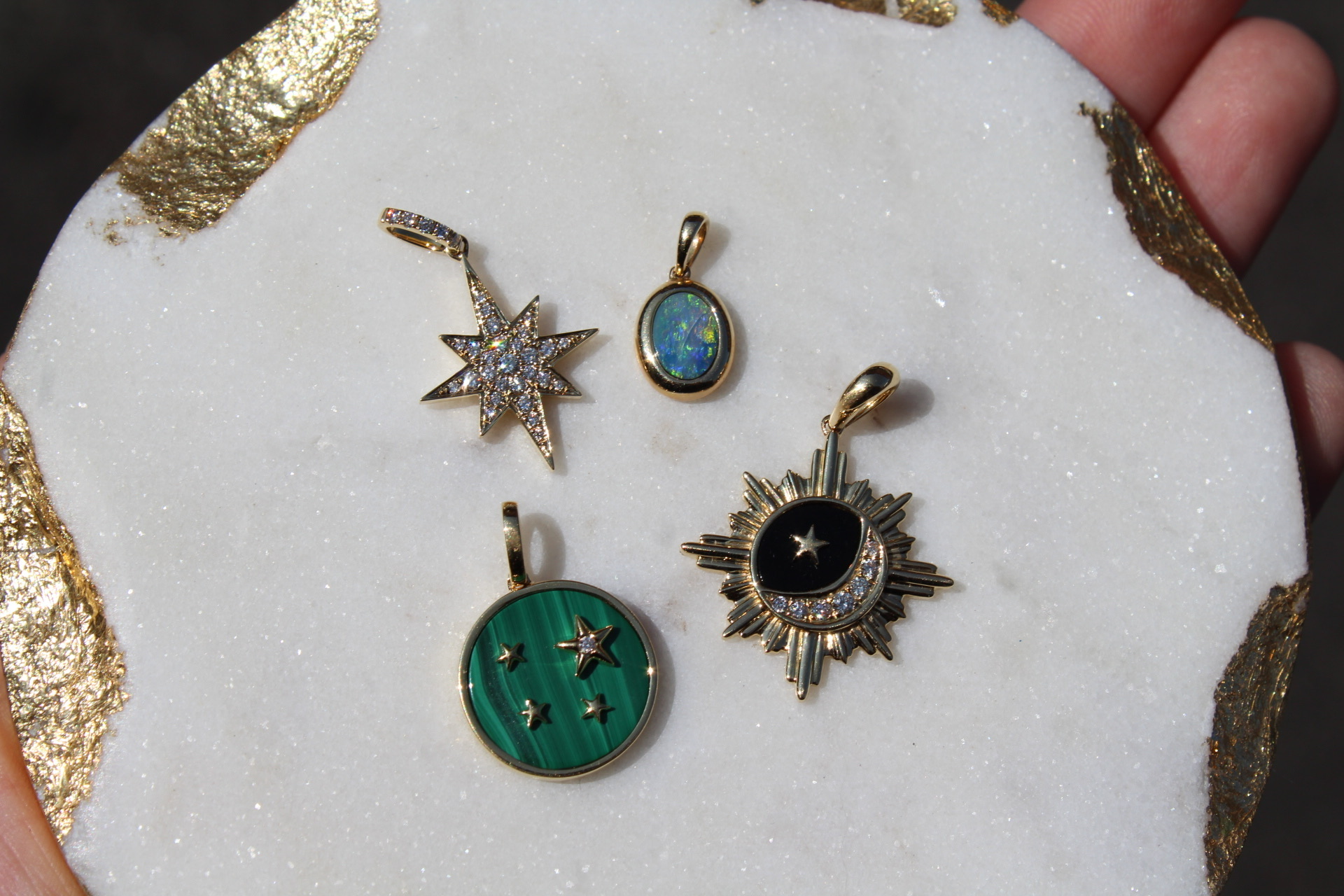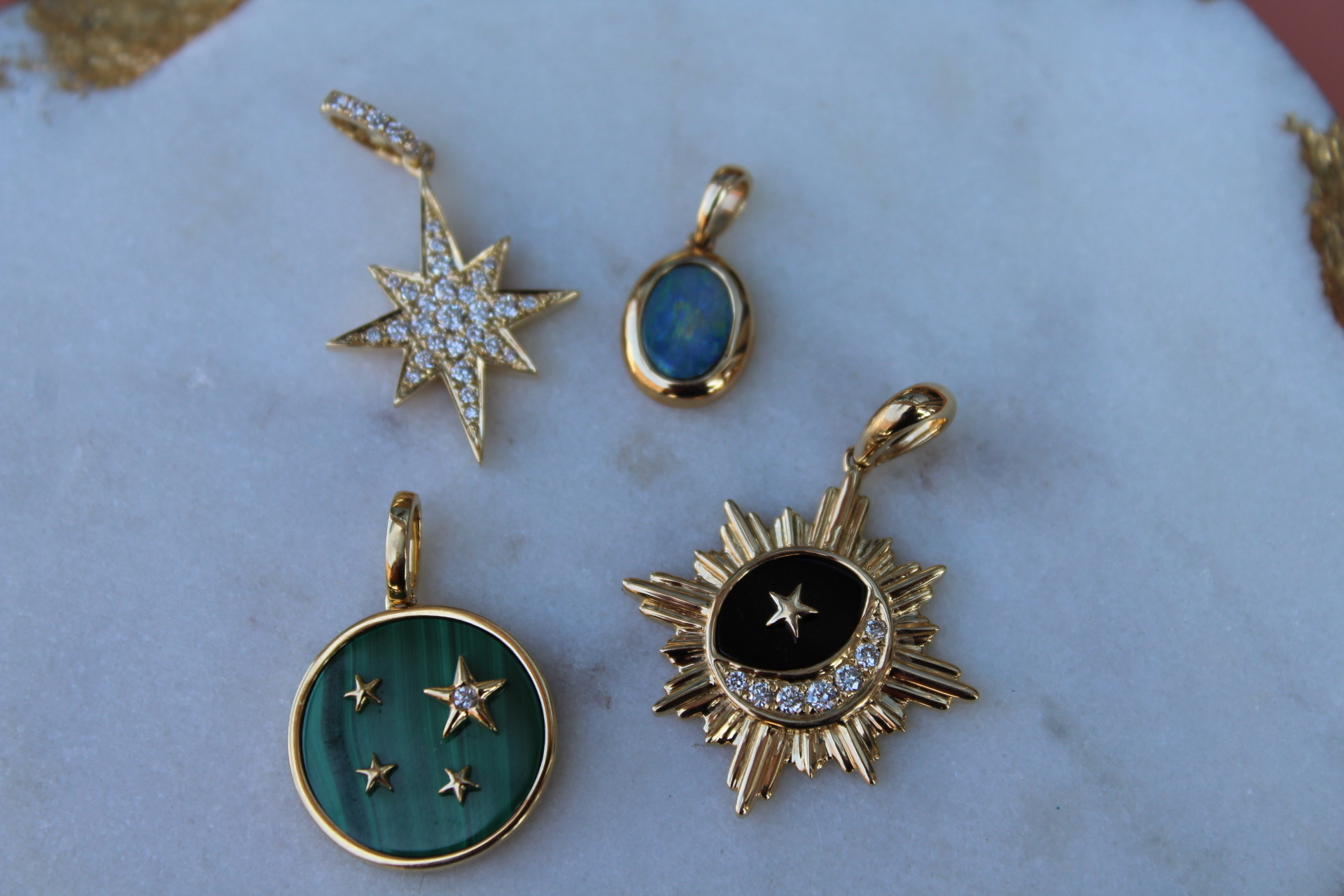 Step into a world where the cosmos meets earthly elegance. "The Sun, The Moon, and The Star" pendant is more than just a piece of jewelry; it's a story waiting to be told. In ancient lore, the sun, moon, and stars were believed to hold immense power and influence over our destinies. This pendant captures that celestial magic, blending it with fine jewelry craftsmanship.