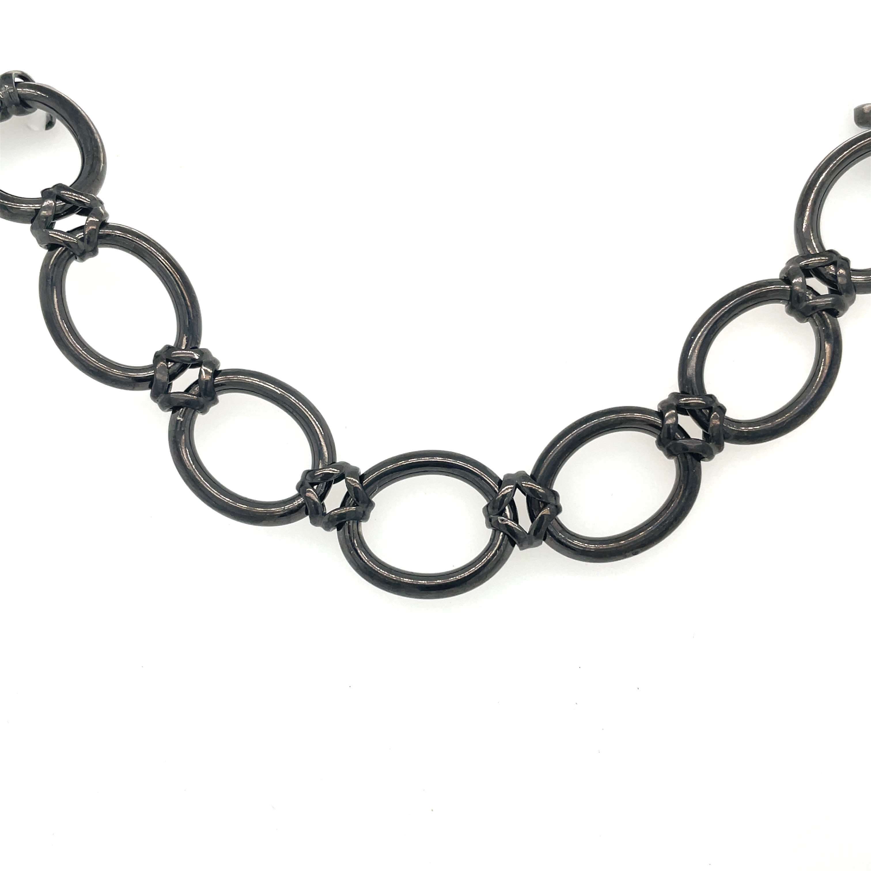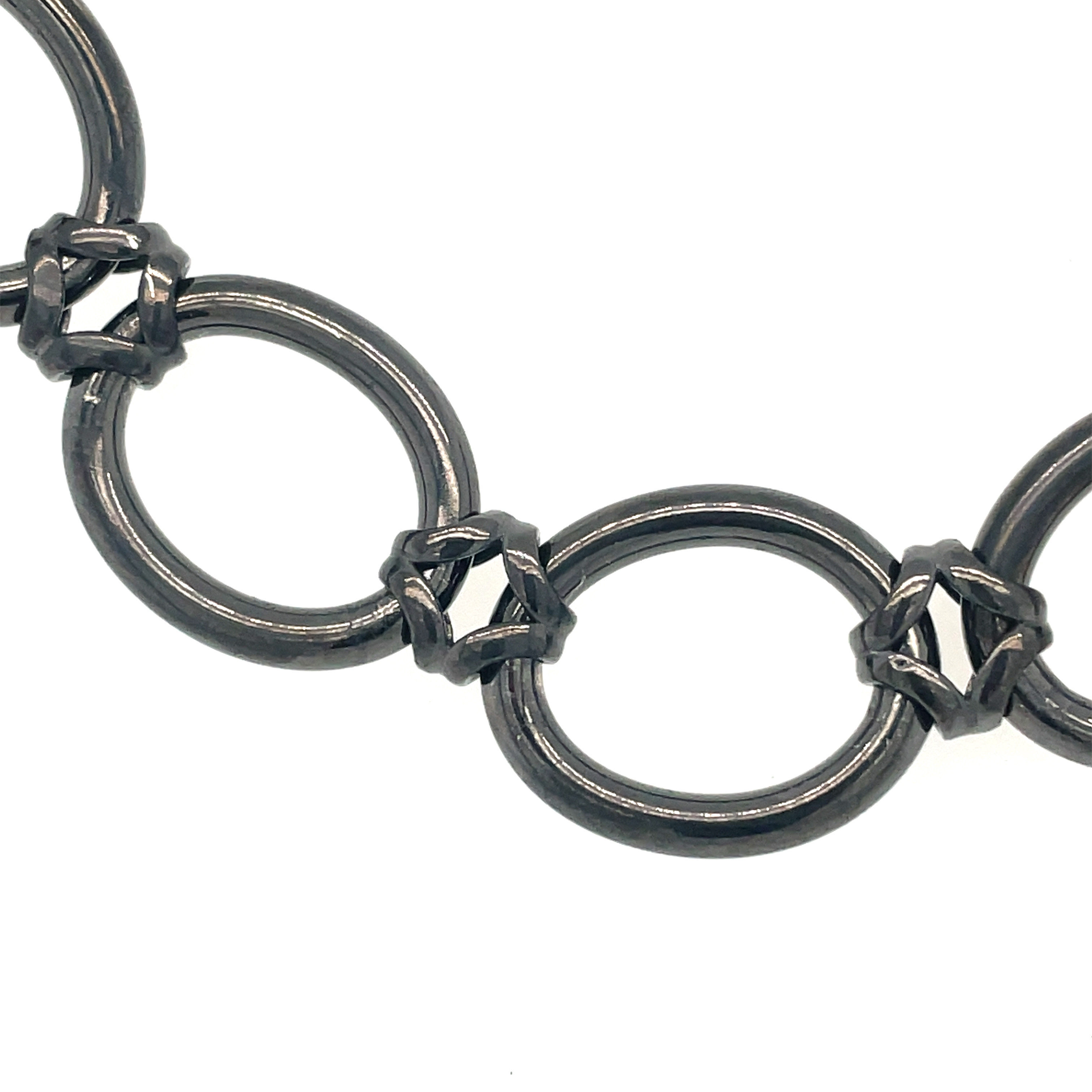 Description 7.5" OXIDIZED STERLING SILVER "AVAYGRAY" OVAL LINK BRACELET OXIDIZED STERLING SILVER- HIGH POLISHTOTAL LENGTH: 7 1/2 INCHES WITH 2 INCH OPEN LINK CHAIN EXTENDERPULL CLASP BRACELET CLOSURE