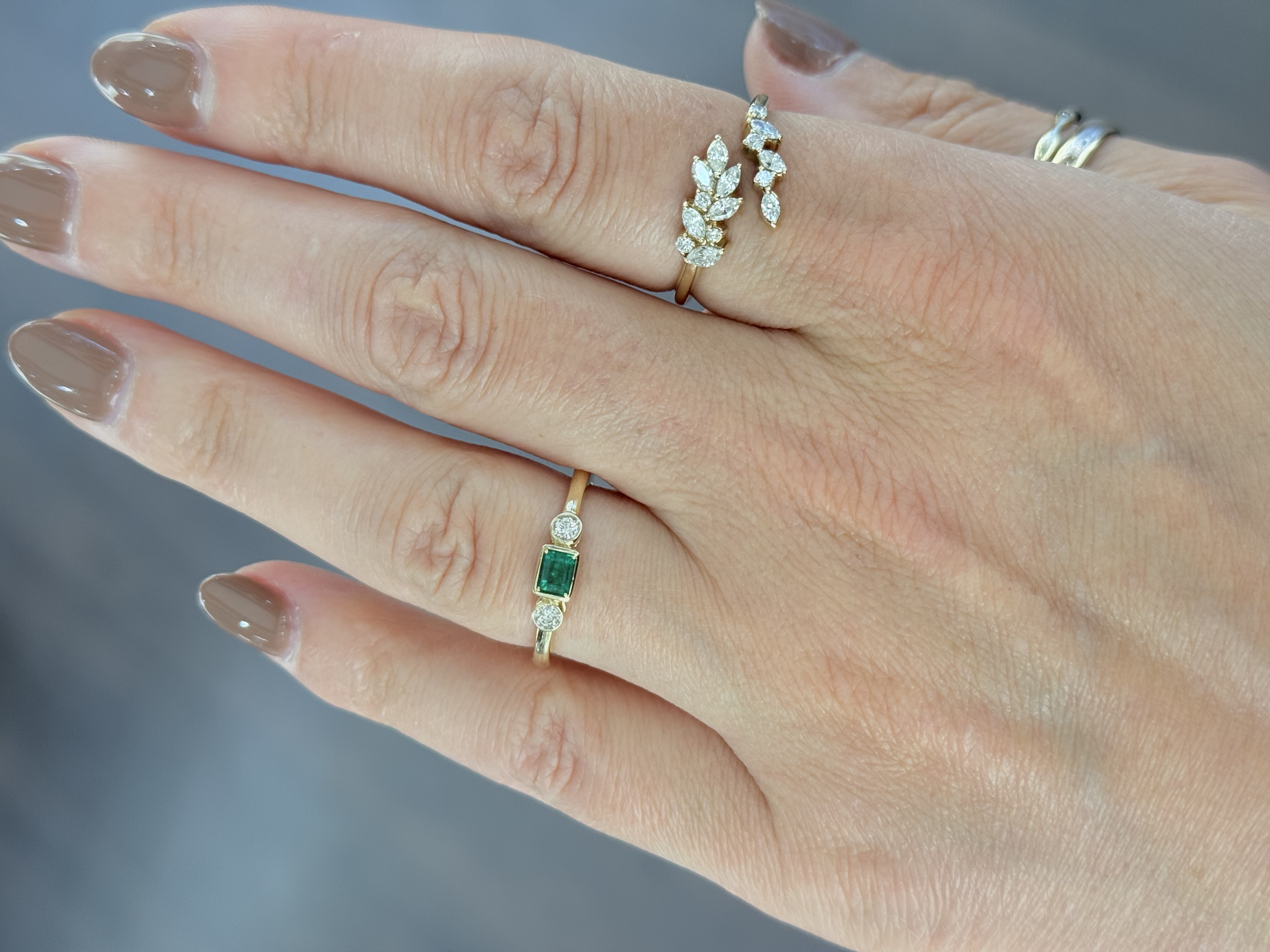 1=.20CT BAGUETTE CUT EMERALD, BEZEL SET WITH PRONGS