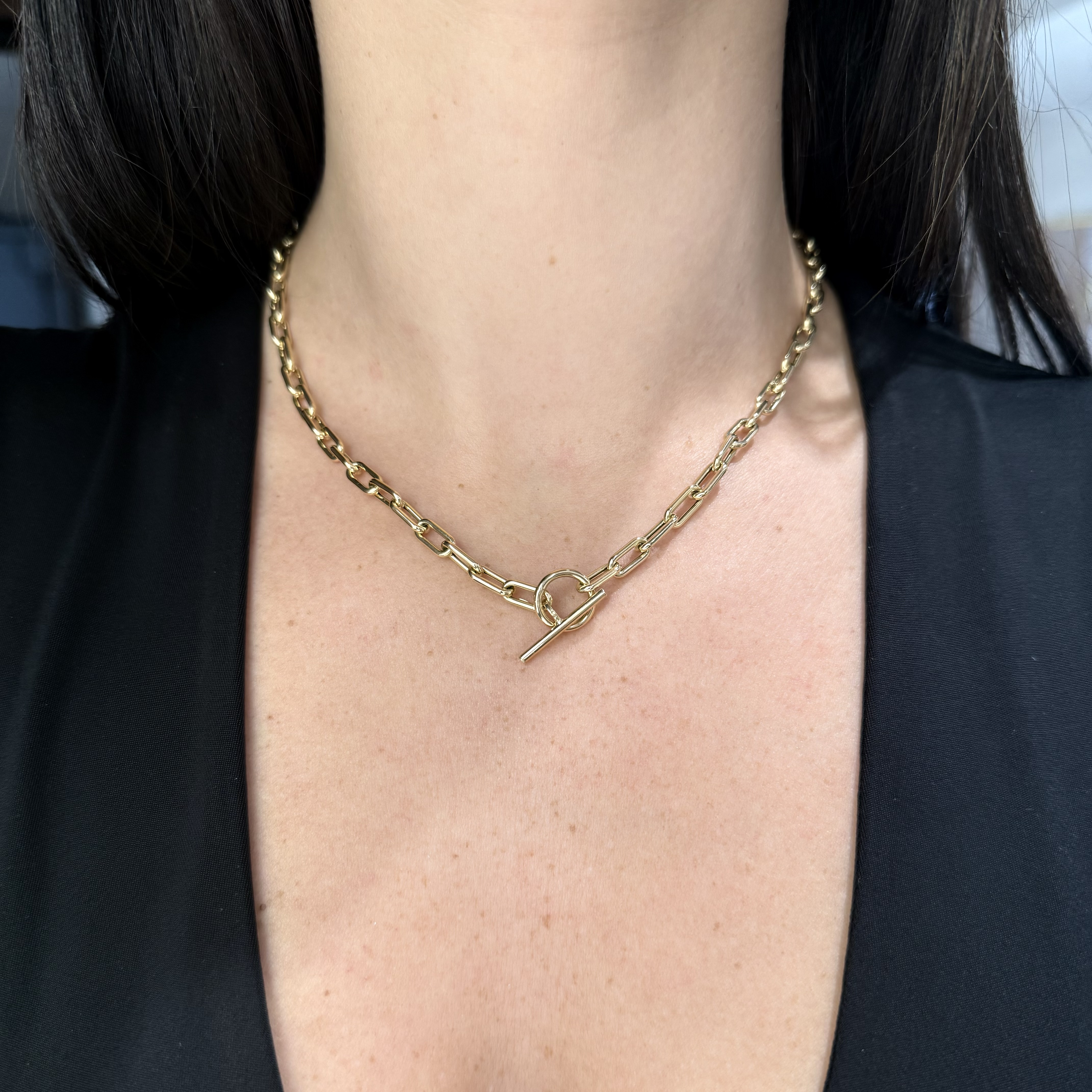 18 1/2" 14KY GOLD PAPER CLIP TOGGLE NECKLACE