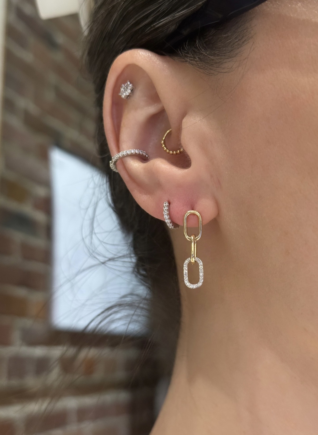 14KY GOLD POLISHED & PAVE DIAMOND TRIPLE LINK DANGLE EARRINGS