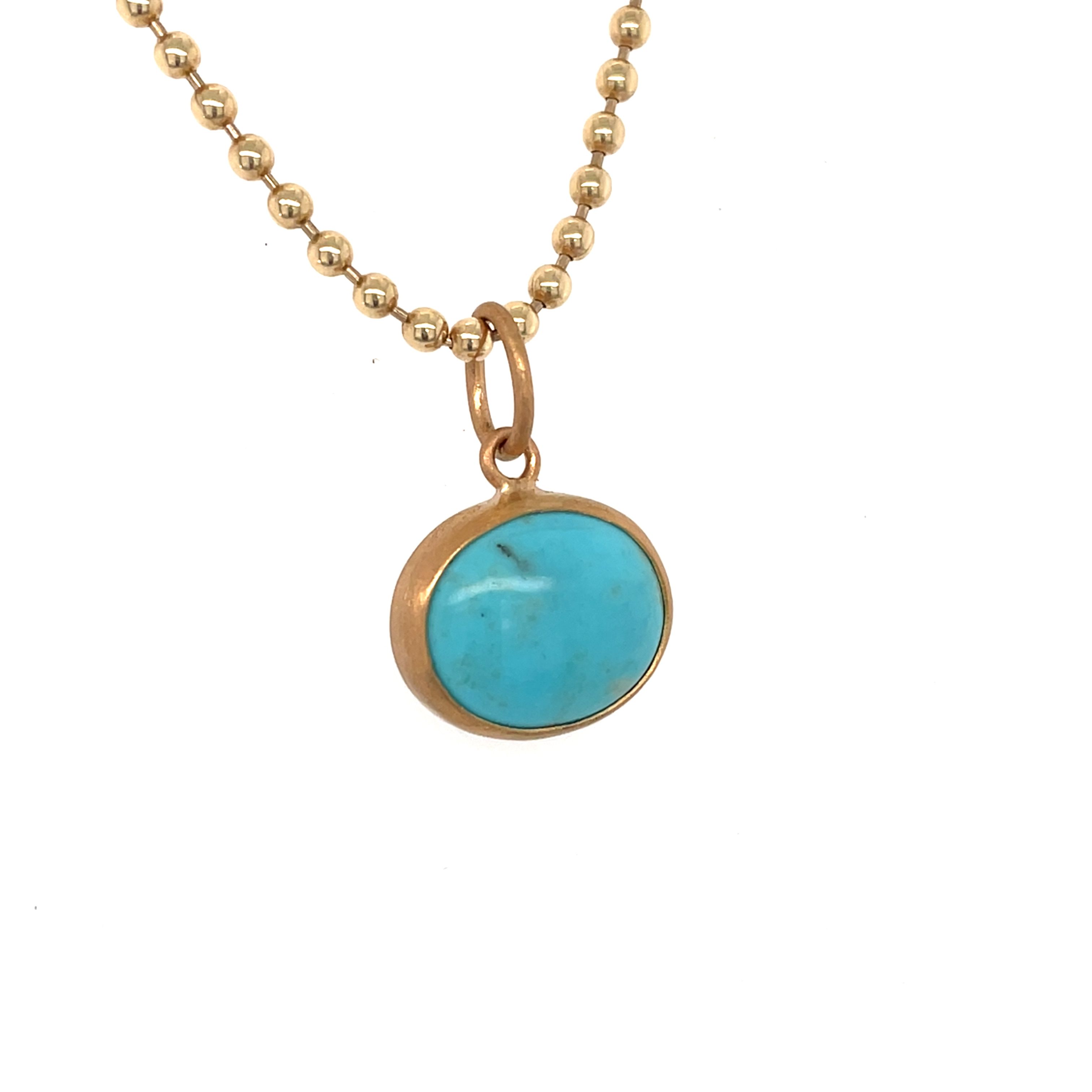 Description 22KY GOLD OVAL ARKANSAS TURQUOISE PENDANT 22KT YELLOW GOLD- 917, MATTE FINISH1= 3.29CT OVAL CABACHON ARKANSAS TURQUOISE, BEZEL SET, 10X12MM *chain sold separately