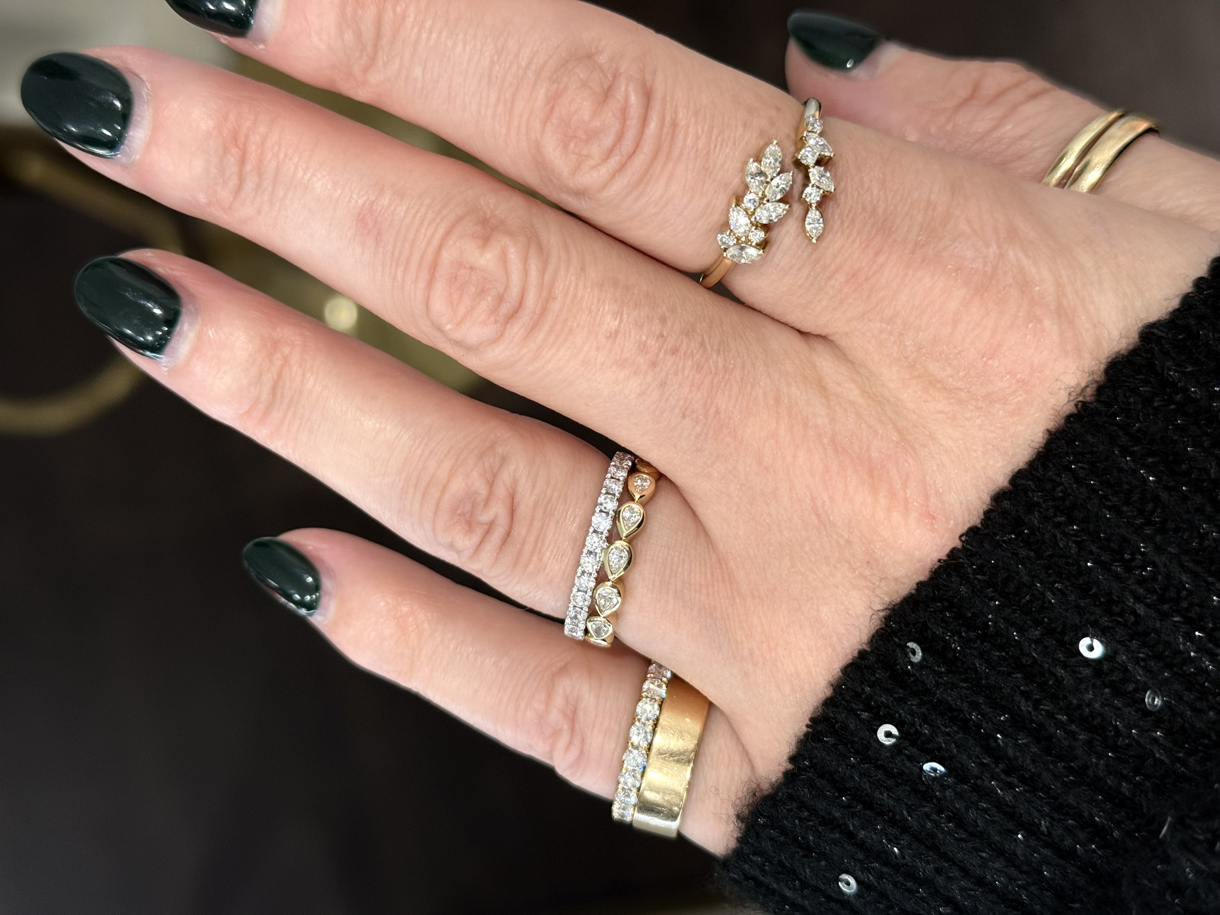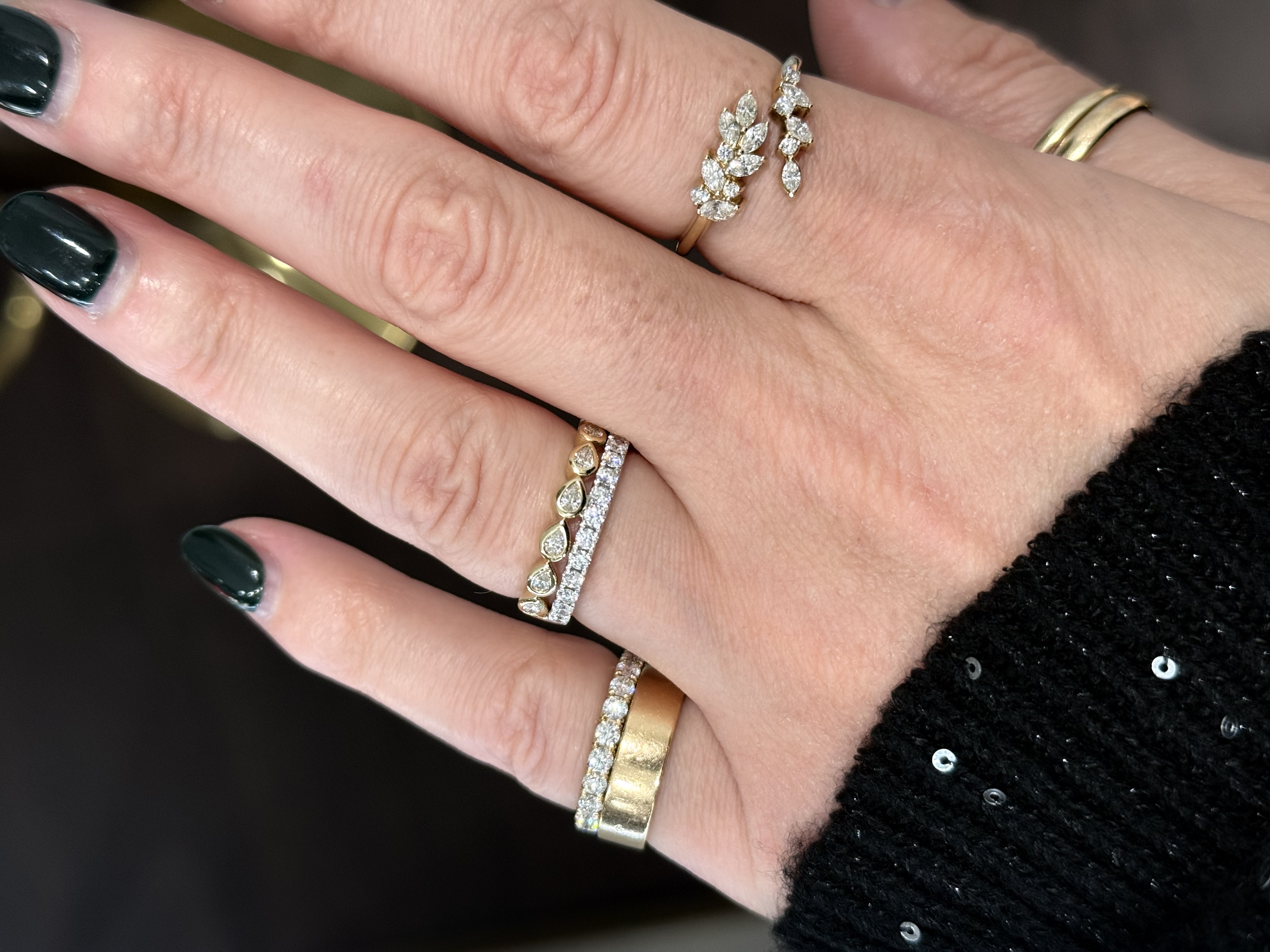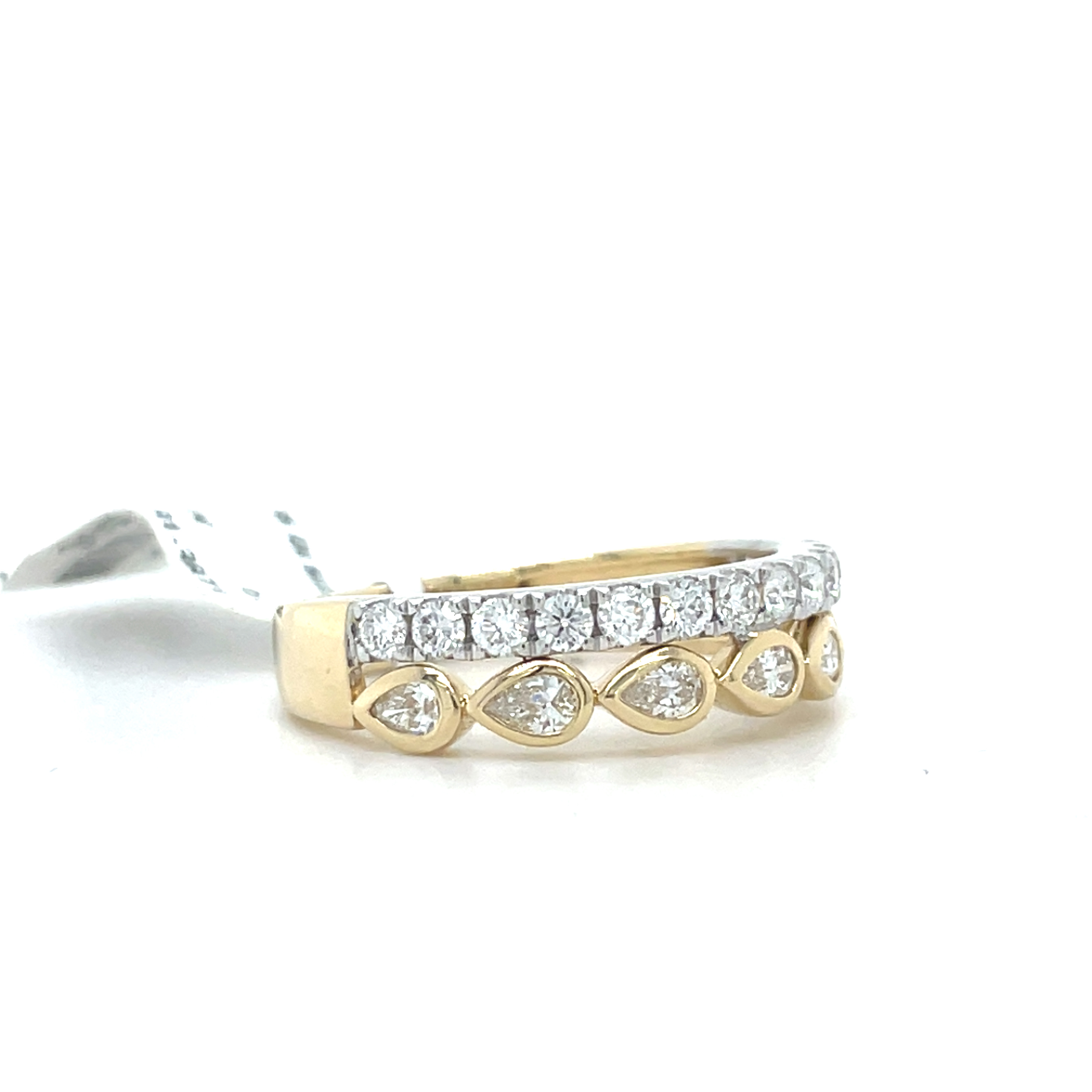 14KY&W GOLD TWO-ROW BEZEL SET PEAR AND PRONG SET DIAMOND BAND