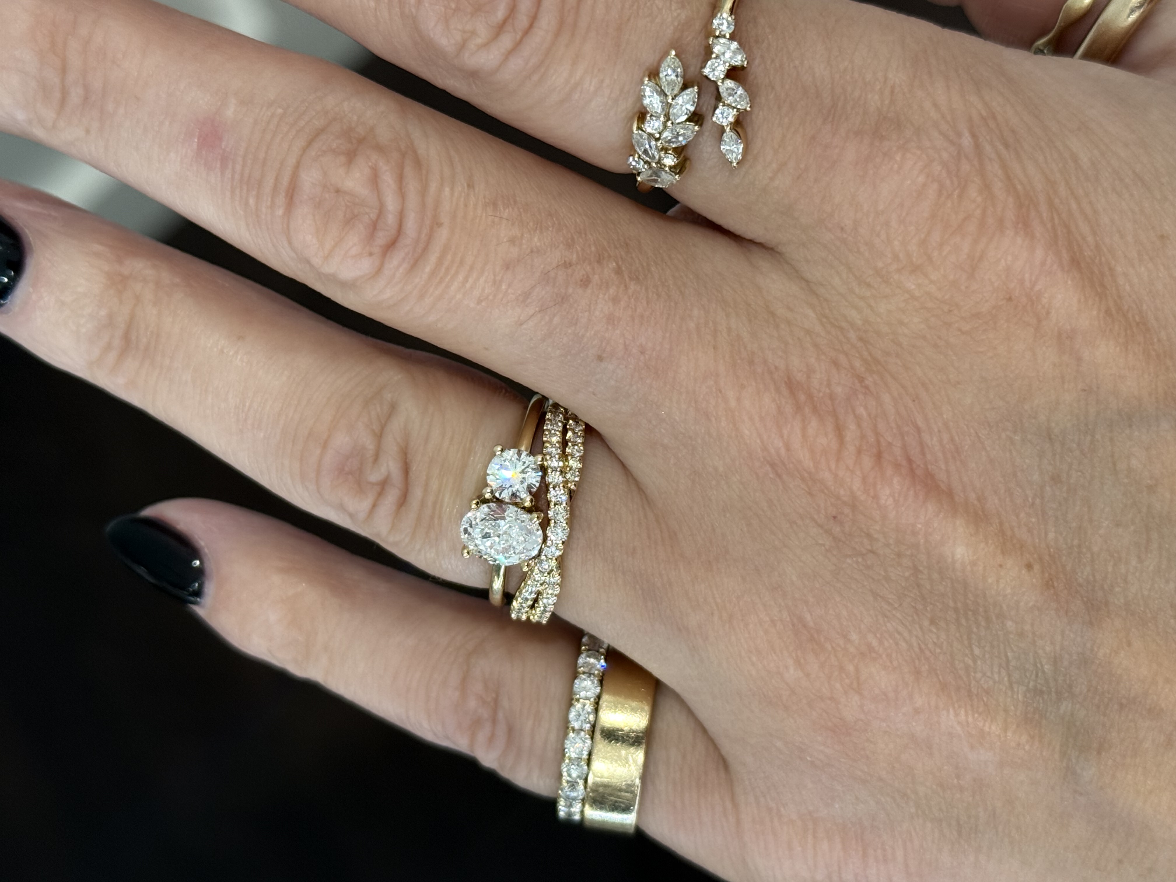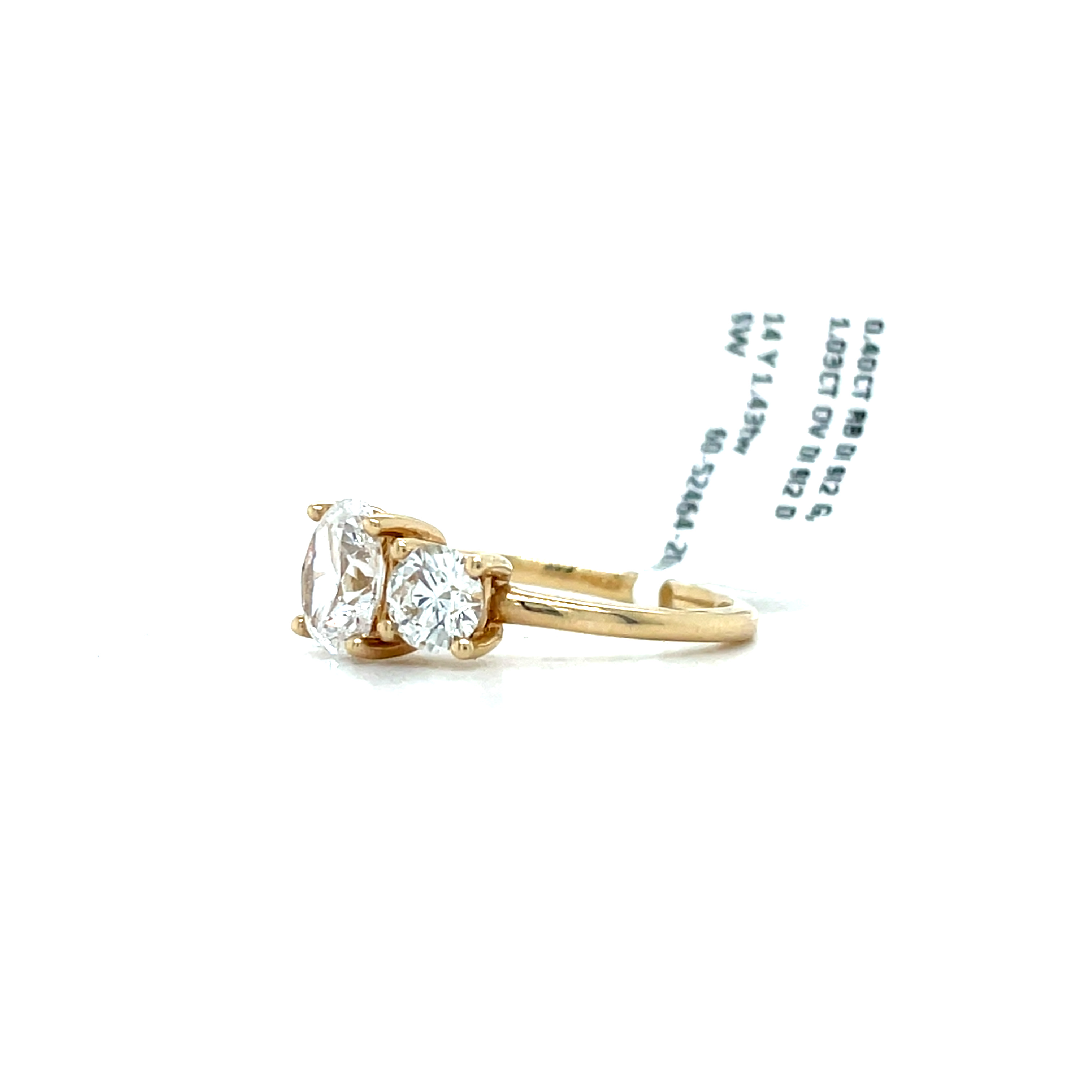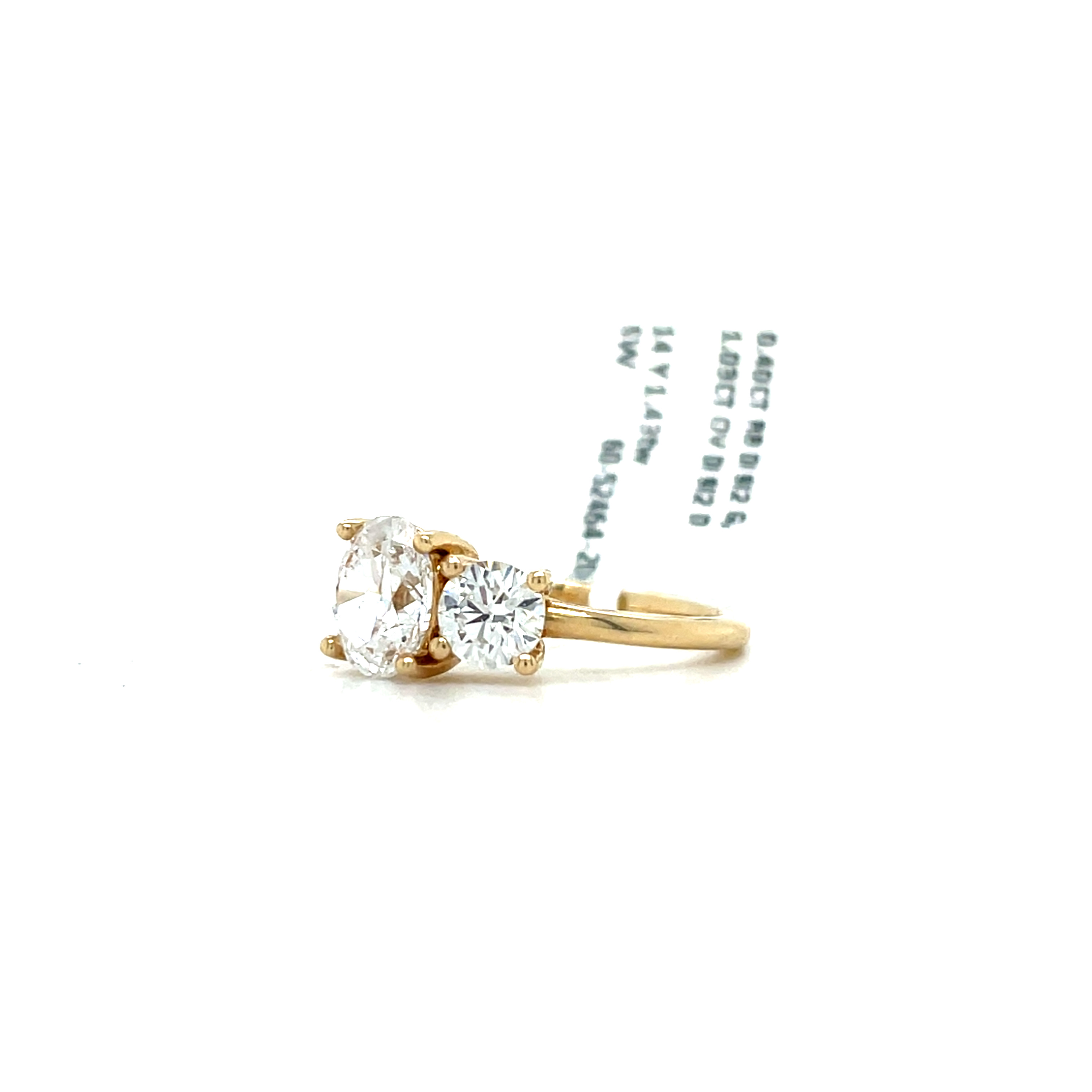 14KY GOLD TWO STONE DIAMOND RING WITH .40CT ROUND DIAMOND AND 1.03CT OVAL DIAMOND