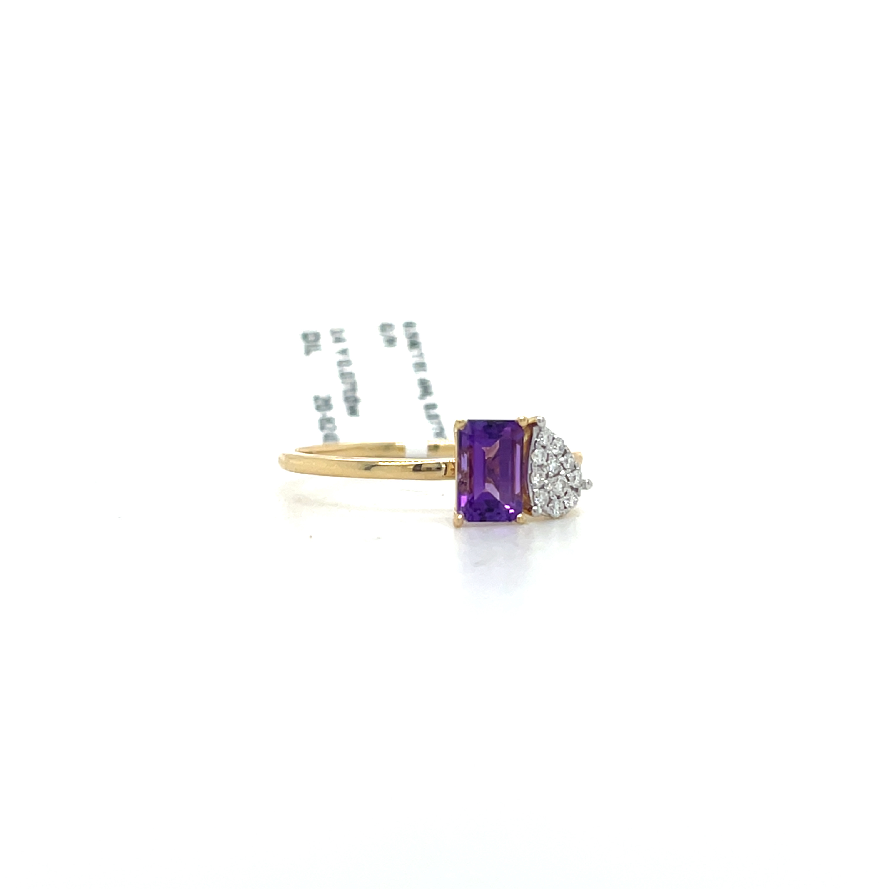 14KY GOLD EMERALD CUT AMETHYST & PAVE DIAMOND PEAR "TOE ET MOI" RING