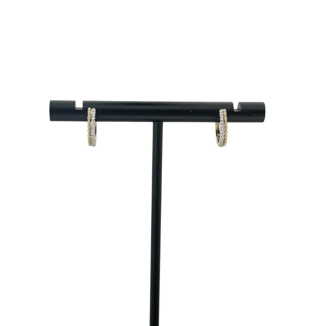 14KY&W GOLD DIAMOND HUGGIE HOOP EARRINGS WITH BEADED EDGE