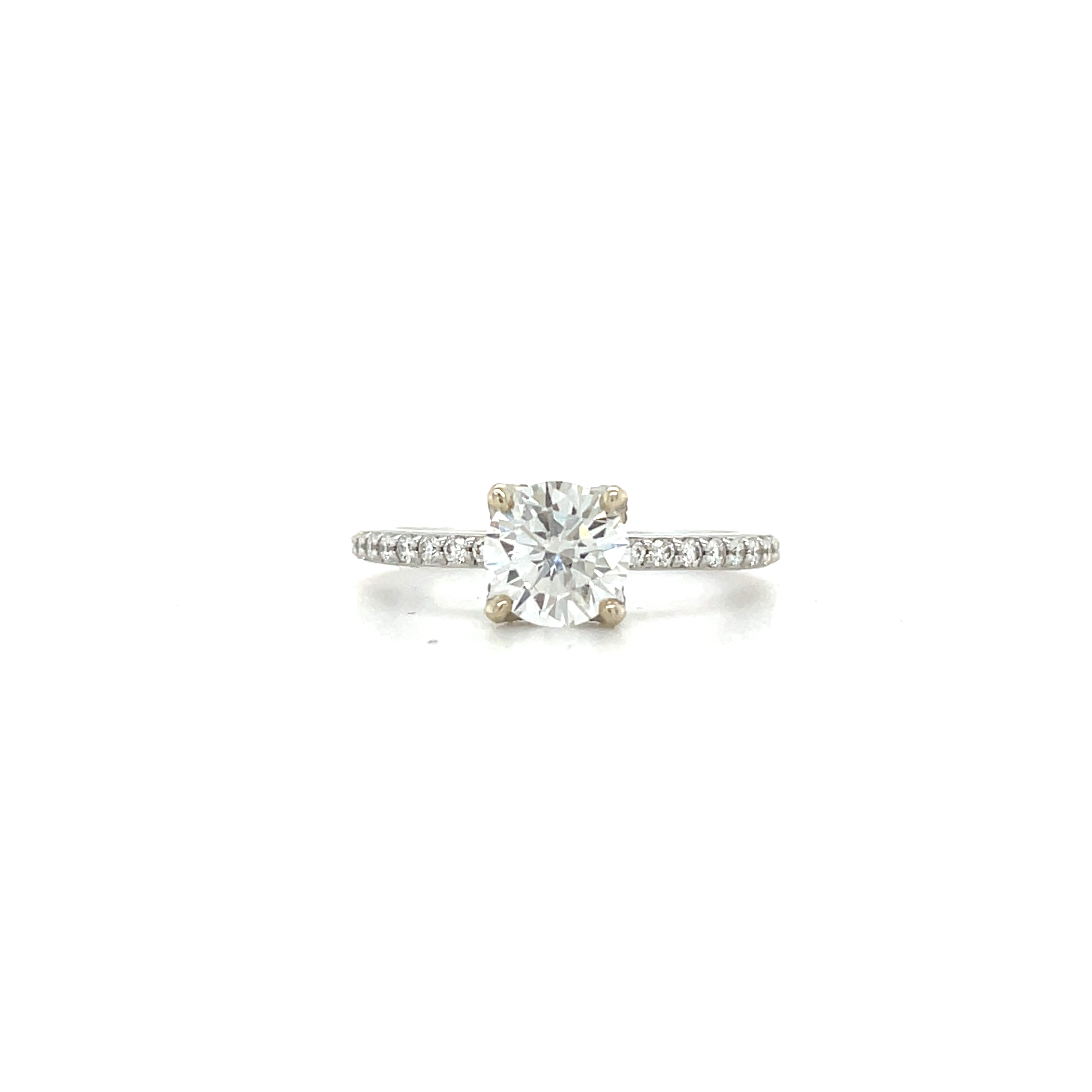 14KW GOLD 1.00CT G, I1 ROUND BRILLIANT CUT DIAMOND ENGAGEMENT RING WITH DIAMOND SHANK