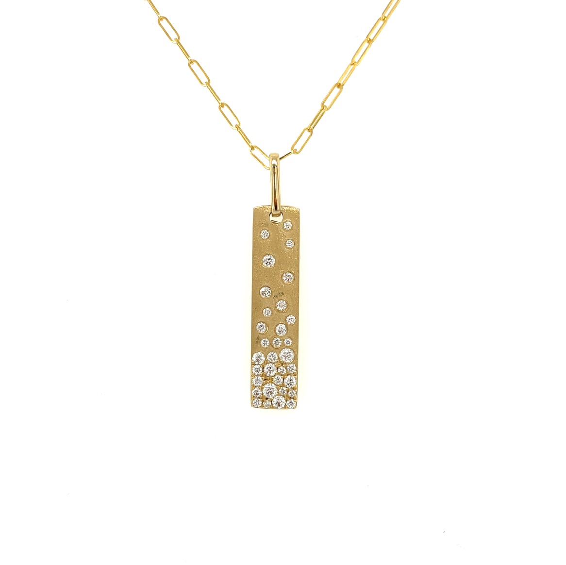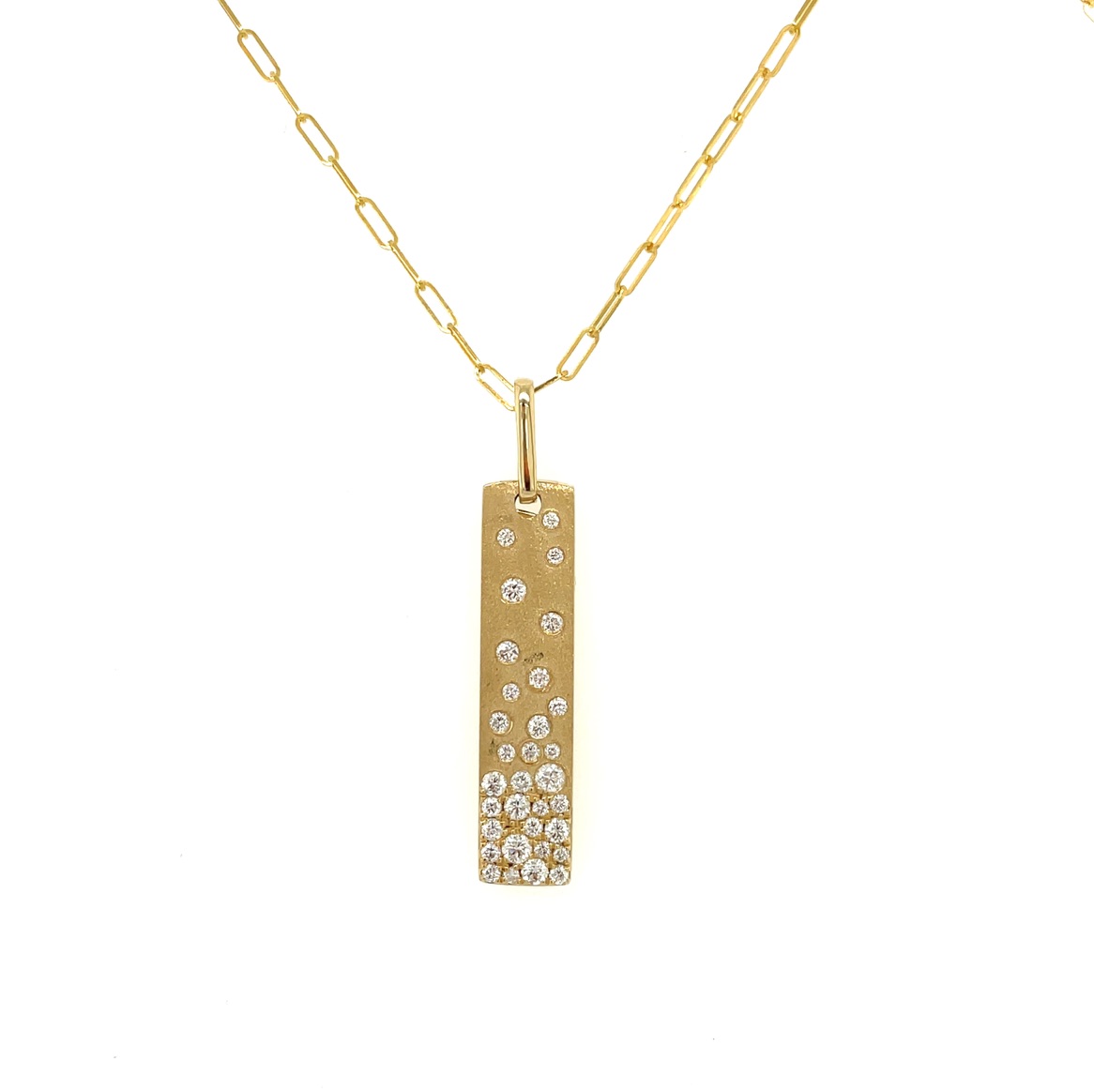 14KY GOLD "CONFETTI COLLECTION" BY DILAMANI FLUSH SET DIAMOND VERTICAL BAR PENDANT