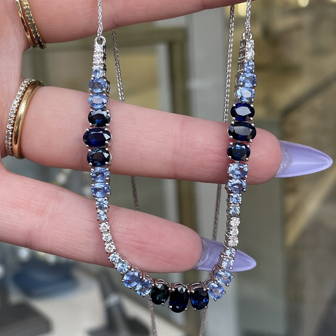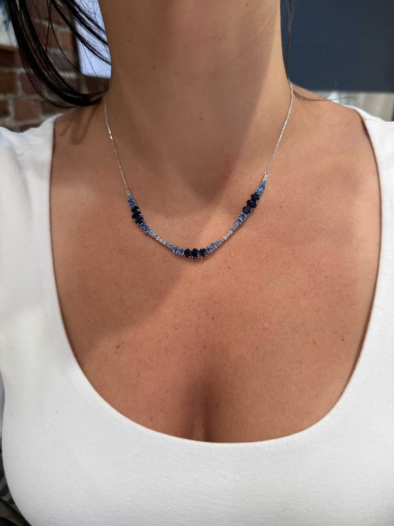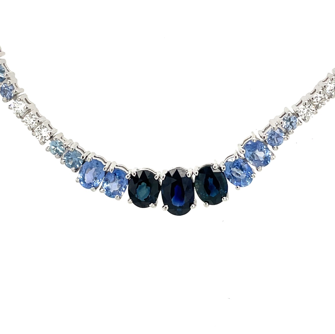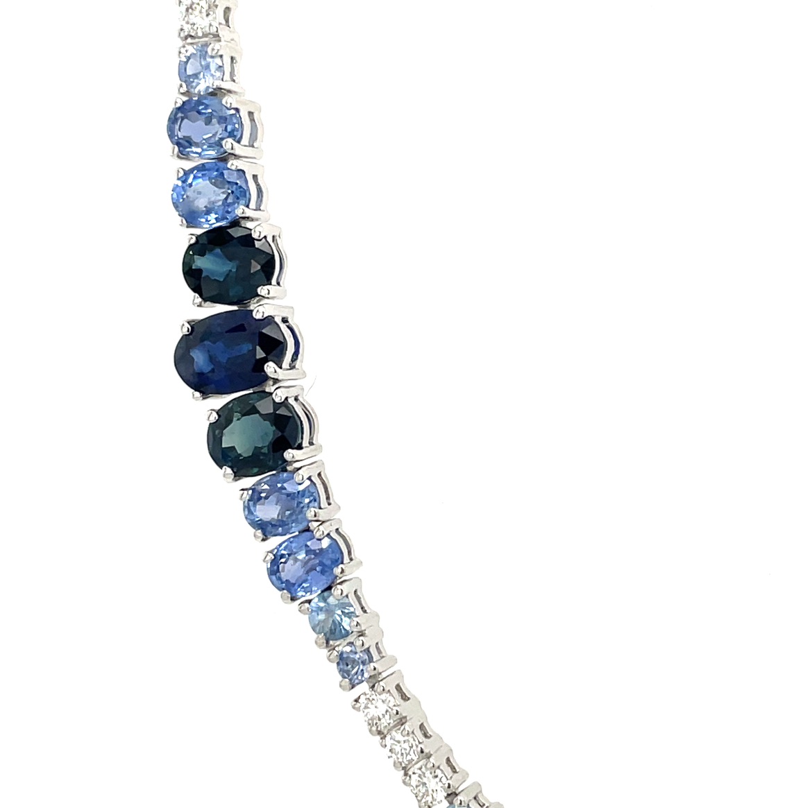 18" 14KW GOLD "PRINCESSA COLLECTION" BY BELLARI™ RIVIÈRE MULTISHADE BLUE SAPPHIRE AND DIAMOND NECKLACE