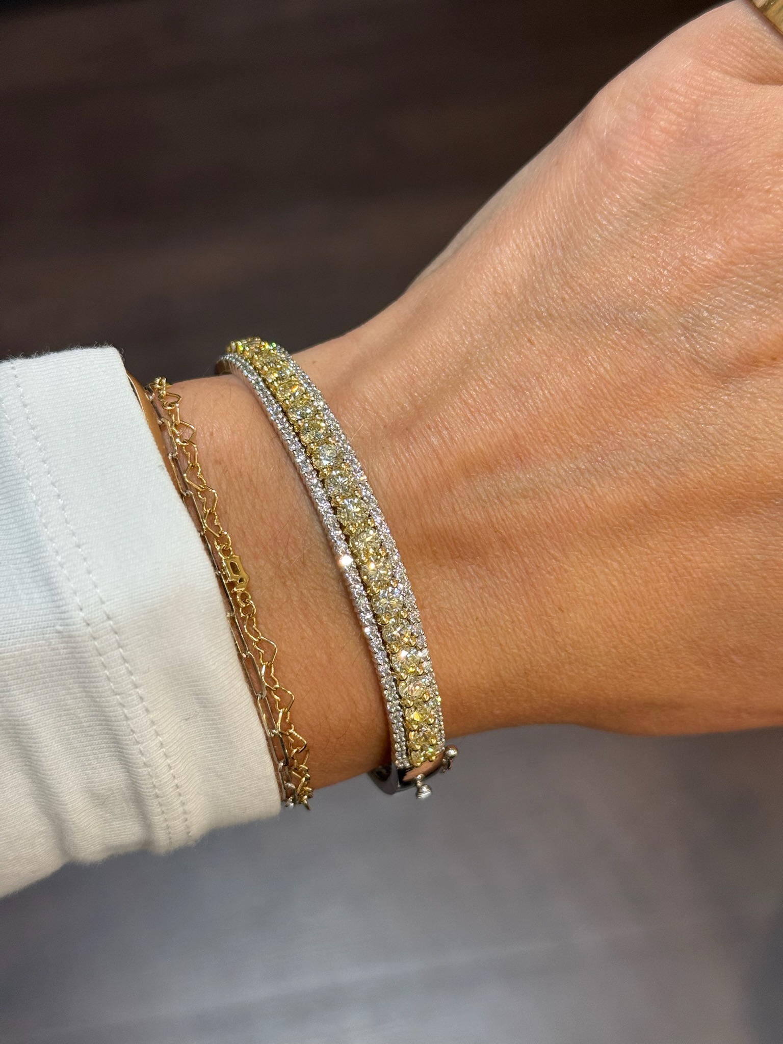 14KW GOLD 5.63CTTW THREE-ROW YELLOW & WHITE DIAMOND HINGED BANGLE BRACELET